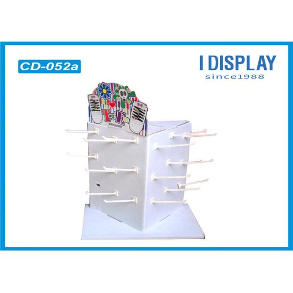 White Cardboard Counter Display For Supermarket Toys Retail With Plastic Hooks